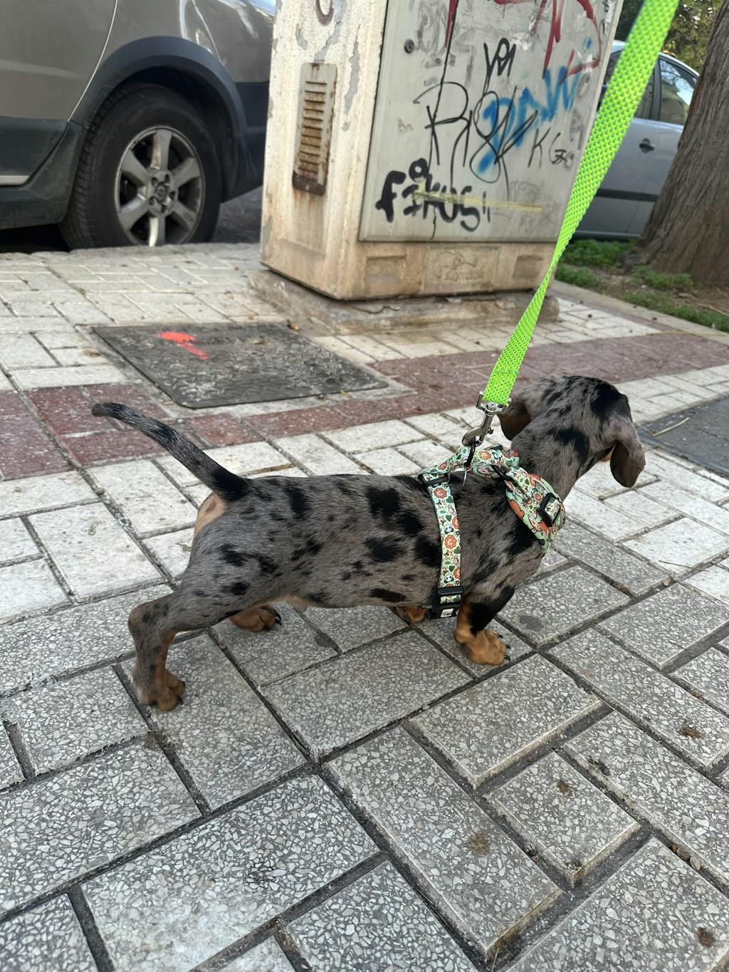Núria Vidal Batet El arnés Safari tiene unos dibujos muy "cutes" y está hecho de buen material. Se adapta perfectamente a mi cachorro de Caniche enano. Estuve dudando entre las tallas XXS y XS y finalmente cogí la talla XXS siguiendo su consejo. También compre la correa a juego, de buena calidad y con un enganche seguro a prueba de fugas.